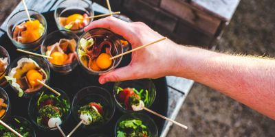 This style breaks up your food displays — unlike a buffet which directs everybody through the food in the same order — with different tables offering different things, usually by category. Stations are a great way to incorporate a theme into your food (for example, "around the world" stations where different countries' foods are represented on each table).